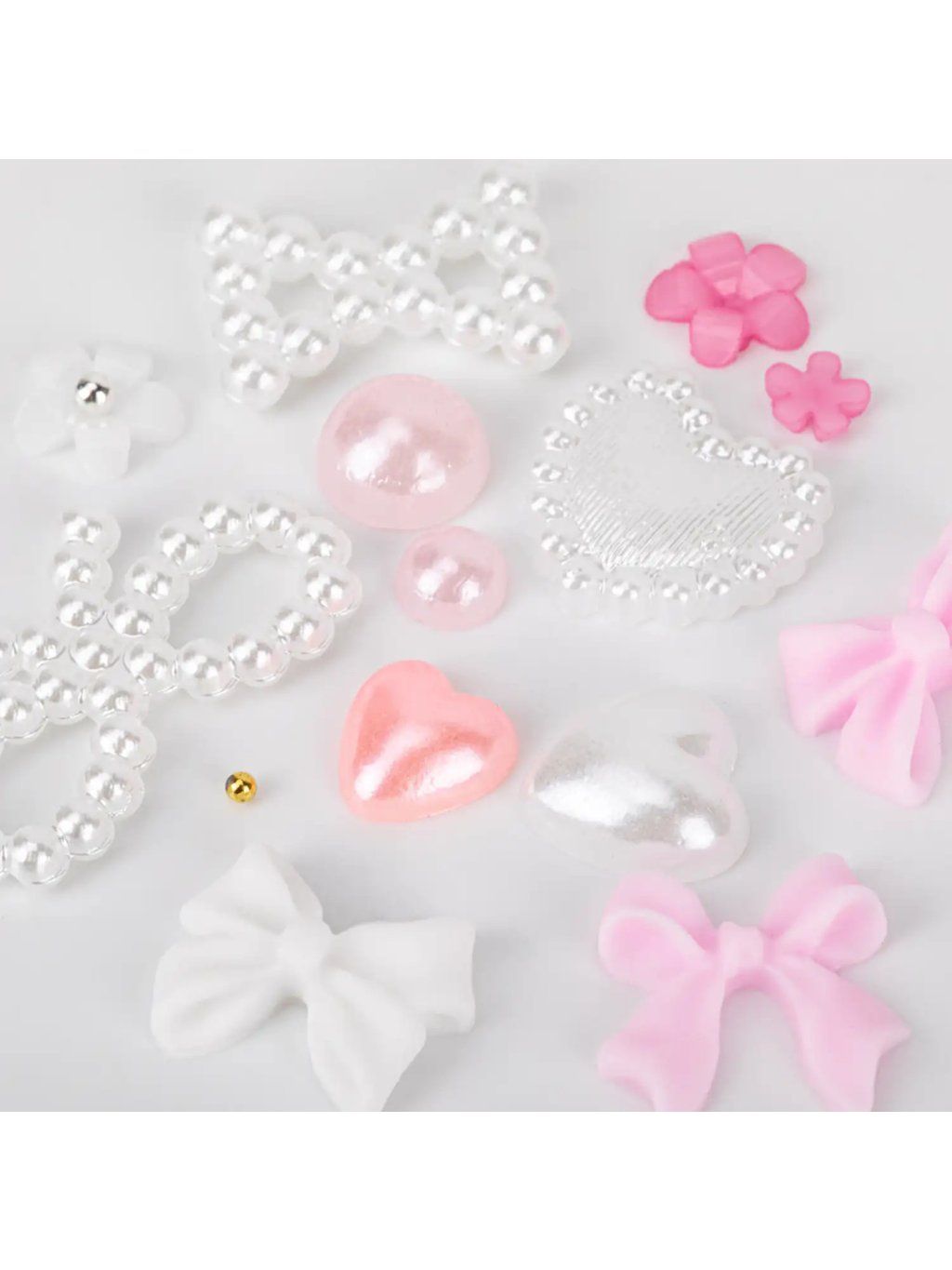 3D ozdoby na nechty – veľký mix 01 je kompletná sada pre hravý, romantický i luxusný nail art. Nájdete v nej pastelové ružové tóny, jemnú bielu perleť a metalické odlesky a tiež rôzne tvary ako mašličky, srdiečka, kvietky a perly. Skvelé pre jemné zdobenie i dominantný 3D akcent na jednom nechte.