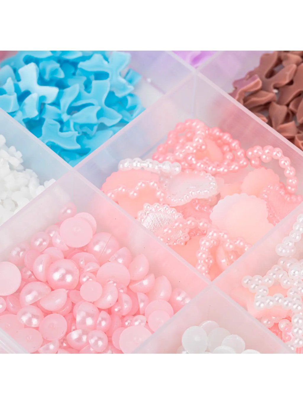 Obsahuje 15 samostatných boxov s viac než 1000 kusmi ozdôb, takže máte pripravené motívy a farby pre rôzne štýly – sladký ružový look, temnejší čierny akcent, alebo kombináciu červenej a perličiek pre glamour efekt.