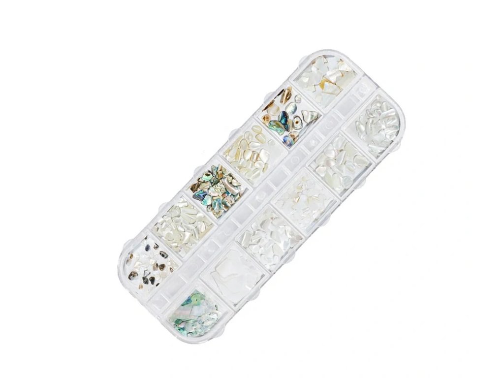 3D ozdoby na nechty - rozdrvené mušle
