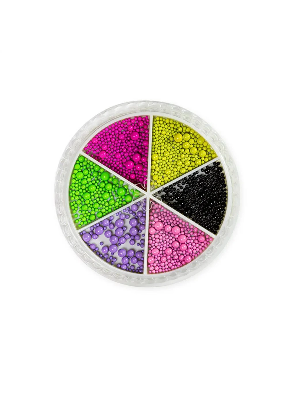 3D ozdoby na nechty – mix perličiek Bulion 03 v plastovom karuseli so 6 priehradkami.