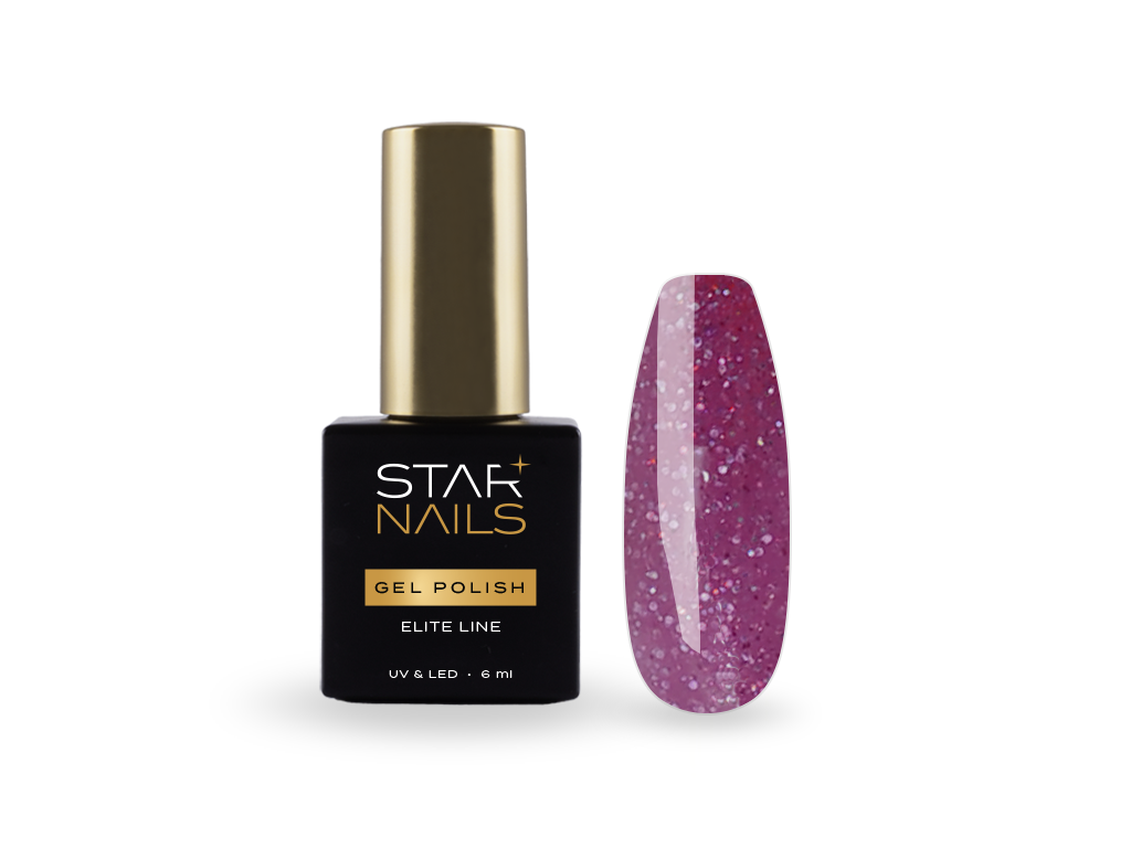 233 Yela – ELITE LINE: Tmavo ružovo-fialový základ s jemnými glitrami. Polotransparentná textúra ideálna pre kreatívne vrstvenie a jemné efekty.