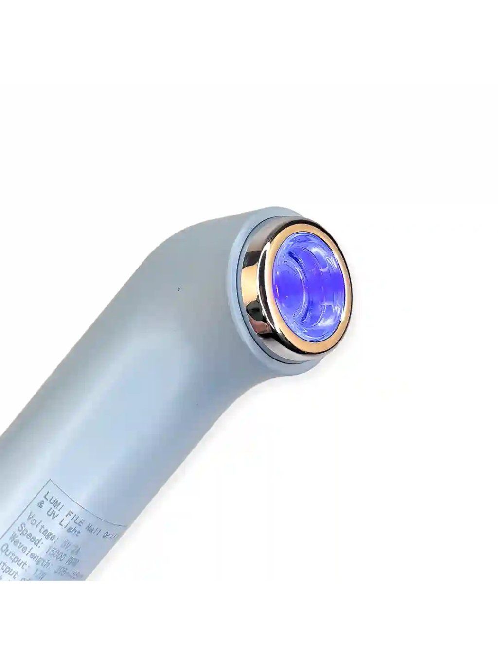 STARNAILS LumiFile Sky v pastelovej modrej farbe, je inovatívne 2v1 zariadenie, ktoré spája bezdrôtovú brúsku na nechty s integrovanou UV lampou.