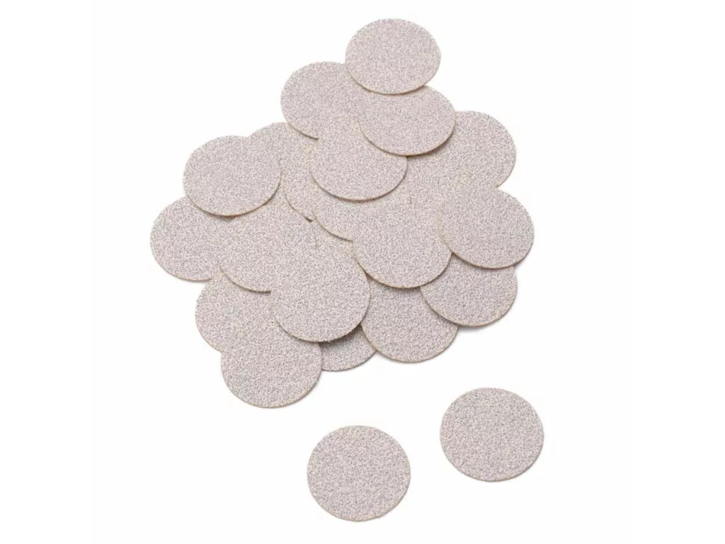 Náhradné brúsne nadstavce pre kotúčový disk na pedikúru disponujú silnou samolepiacou spodnou plochou, ktorá zabraňuje nežiaducemu pohybu či odtrhnutiu pri brúsení.
