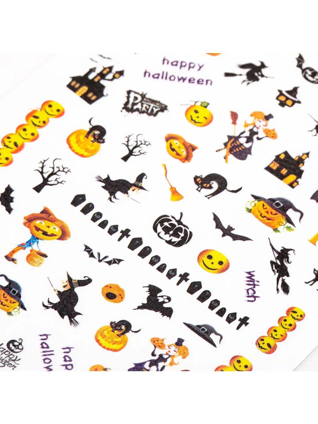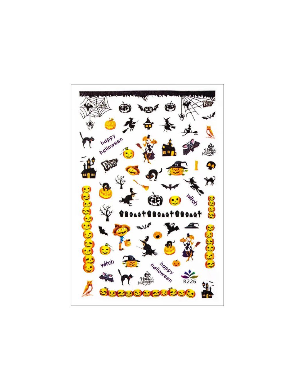 Samolepky na nechty – Happy Halloween R226 — 1 hárok o veľkosti 7 × 12,5 cm s rôznymi halloweenskými motívmi.