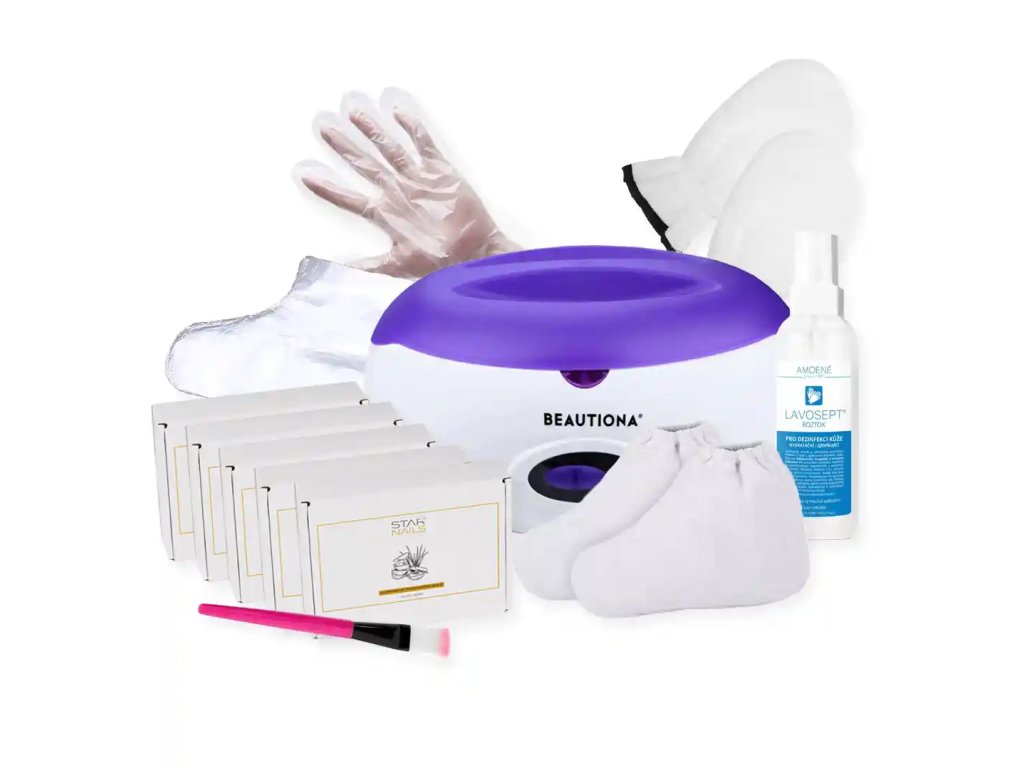 Parafínový kúpeľ, alebo parafínová vanička pre Vaše ruky aj nohy v all inclusive verzii s darčekom. Vanička obsahuje všetko potrebné pre okamžitú aplikáciu - 4 kvalitné parafíny Aloe Vera, jeden pár thermo rukavíc a jeden pár thermo ponožiek. Ďalej dostanete štetec pre aplikáciu parafínu, ktorý využijete na nanášanie parafínu na iné časti tela, napríklad na chrbát a darček v podobe 100ks plastových rúk univerzálnej veľkosti.