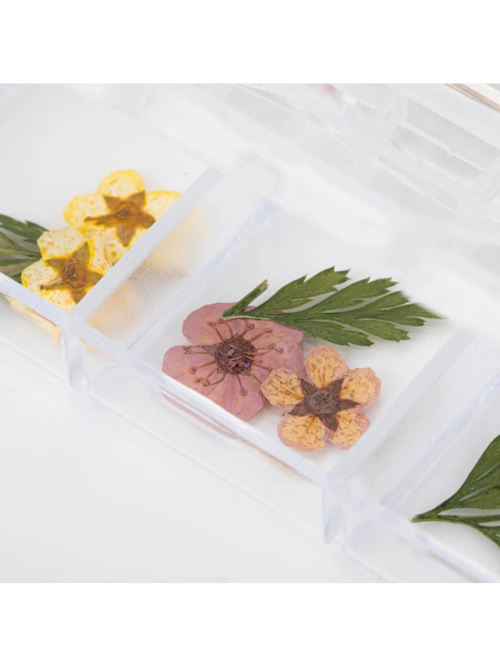 Sada sušených kvetov na nechty – Mix farieb — 12 organizérov s oddelenými priehradkami, ktoré obsahujú mix rôznych tvarov kvetov a prírodných lístočkov v pestrých odtieňoch.