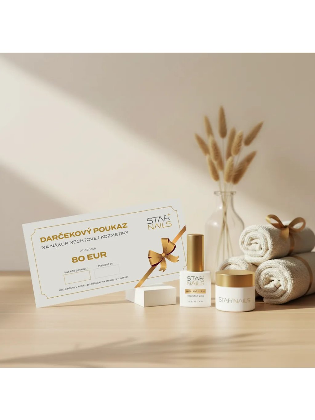 Tlačený darčekový poukaz umožní obdarovanému vybrať si akýkoľvek tovar z nášho e-shopu presne podľa jeho želania. Súčasťou poukazu je unikátny zľavový kód, ktorý stačí zadať v košíku a hodnota 80 EUR sa automaticky odpočíta z objednávky.