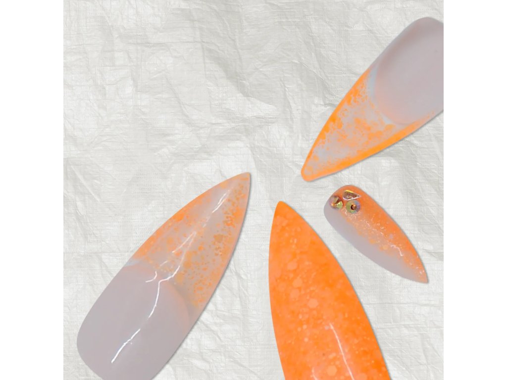 UV/LED gél so žiarivo neonovo oranžovým základom a konfetkami.