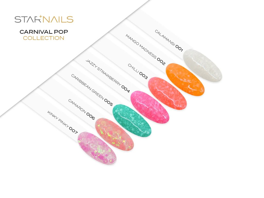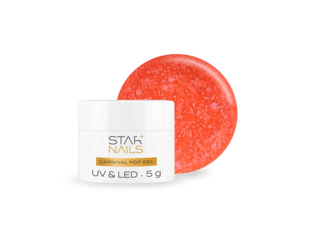 Rozžiarte manikúru energickým tónom! Carnival Pop 003 – Chilli spája šťavnatý sýto oranžovo-ružový (lososový) základ s jemnými glitrovými časticami, ktoré vytvárajú moderný a elegantný sugar efekt. Gél je úplne bez HEMA a Di-HEMA, takže je vhodný aj pre klientky s citlivou pokožkou alebo alergiami.