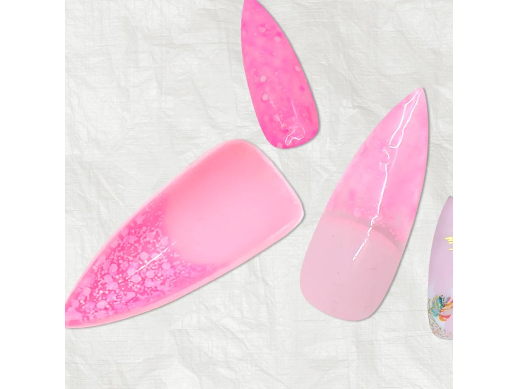 UV/LED gél so žiarivo neonovo ružovým základom a konfetkami.