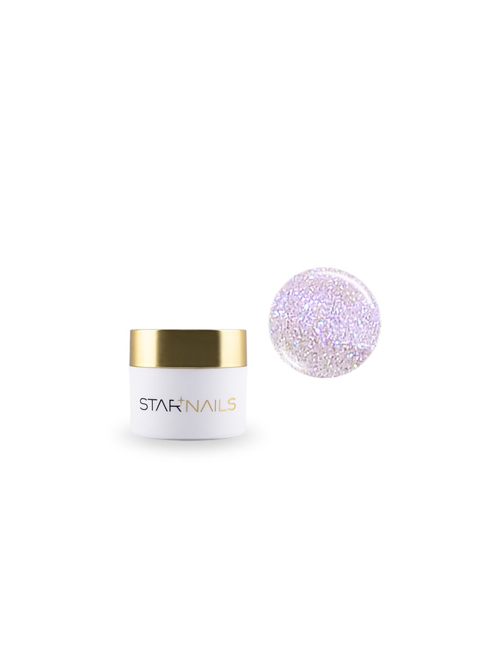 Polotransparentný základ gélu vo fialkovom odtieni dopĺňajú jemné ružovo-fialové glitry.
