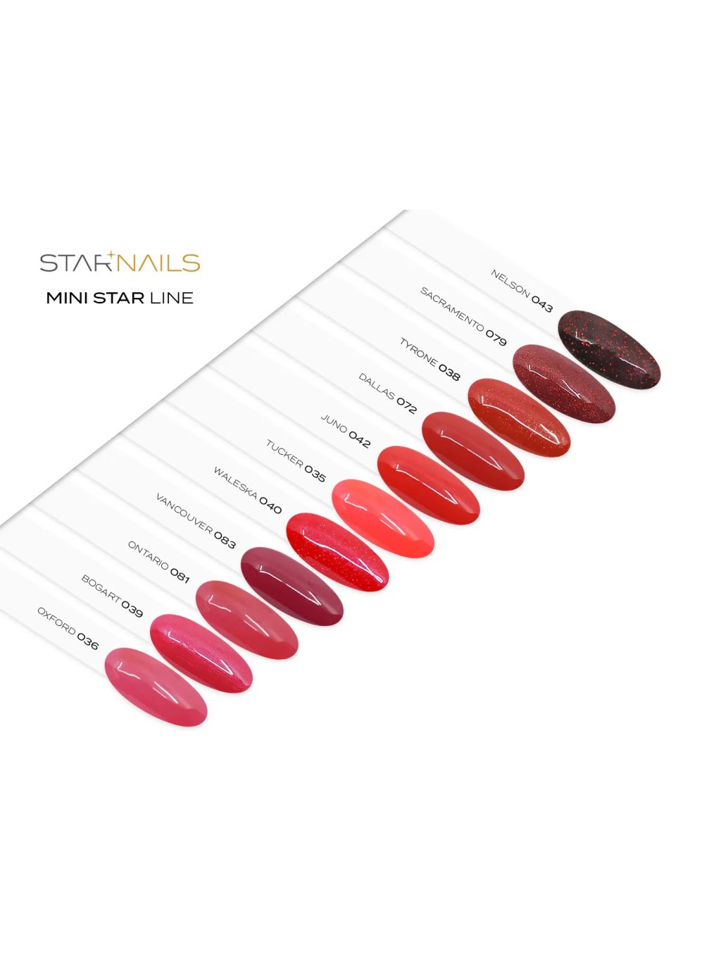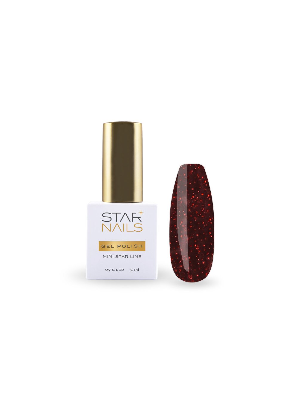 Gel lak vysokej kvality 043 - NELSON zo základnej rady gel lakov STARNAILS MINI STAR je prvou voľbou nielen pre profesionálnych nechtových dizajnérov. Vyznačuje sa stredne hustou konzistenciou a vysokou krycou schopnosťou už v dvoch vrstvách. Vďaka svojej samovyrovnávacej schopnosti je vhodný aj pre úplných začiatočníkov. Transparentný podklad gel laku obsahuje hustú koncentráciu červených jemných glitterov, ktoré vo výsledku vytvárajú sýty jednotný vzhľad.