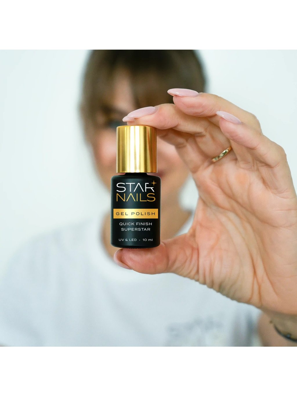 Bezvýpotkový zakončovací univerzálny lesk Quick Finish Superstar s TOP vlastnosťami, ktoré ocení každá profesionálka i začiatočníčka. Krištáľovo čistý - extrémne číry, ultra lesklý po mnoho týždňov, nepraská a možno ho použiť na gely i gel laky. Quick Finish Superstar už navždy zostane Vašim naj leskom! Modelovacie vlastnosti Quick Finish Superstar lesku: extrémne číry (ideálny na svetlé a biele farby) - nežltne! bezvýpotkový, ľahký, redší, samonivelačný v tenkej vrstve netvorí mapy, odolá poškriabaniuNeviete si rady? Navštívte poradňu STARNAILS, dozviete sa aký UV gel je najlepší, ako správne modelovať nechty, ako si nasadiť šablóny, či odstrániť UV gel brúskou. Dozviete sa všetko o príprave prírodného nechta pred modelážou a mnoho ďalšieho. Rady a návody sú vhodné pre každú začínajúcu manikérku a sú sprevádzané video-návodmi
